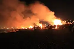 The Sagichō Fire Festival (Japanese: 左義長), also called Dondoyaki (Japanese: どんど焼き) or by other names, is a festival celebrated in Japan, usually on January 14 or 15.[1] During this local event, town or village residents burn their gate pine and other New Year's decorations, as well as to pray for good fortune in the new year. Some Sagichō festivals are held at Shinto shrines.