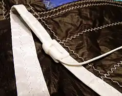 • Bolt ropes are sewn onto the edges of the sail to reinforce them, or to fix the sail into a groove in the boom, in the mast, or in the luff foil of a roller-furling jib.[15]