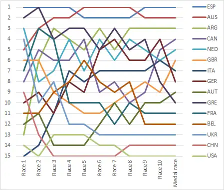 Graph showing the daily standings in the Tornado during the 2008 Summer Olympics