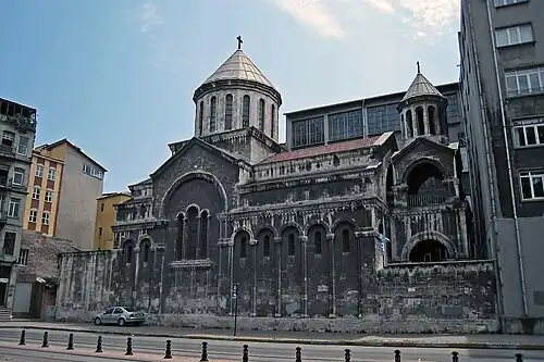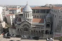 Located in the Galata neighbourhood, it is the city's only church built in the traditional style of Armenian church architecture—namely with a dome with a conical roof.[2][3] The Getronagan Armenian High School was established in 1886 next to the church.[4]
