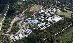 When the firms of O'Neil Ford and Bartlett Cocke were asked to develop the conceptual master plan for the Starcrest Campus, the result was one that drew on Ford's unique Texas Modernist style using natural local materials which would allow his buildings to exist in harmony with the surrounding landscape.[9] Ford designed hundreds of projects throughout Texas from the 1920s to the 1970s, including the distinguishing landmark of the San Antonio skyline, the Tower of the Americas, which he designed for HemisFair '68.[10]