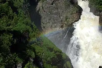 In Saint-Ferréol-les-Neiges are the Seven Chutes, falls which in many cases are 128 m high.[2] Then the river crosses the Canyon Sainte-Anne, a gorge with a length of 10 km. At its end, in Saint-Joachim is the Sainte-Anne waterfall, 74 m high.