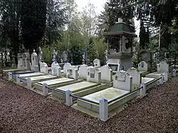 As its future remains precarious, several notable Russians – including Ivan Ilyin and Ivan Shmelev – were exhumed and reburied in Moscow.[6] The cemetery is closed to new burials. It was only after pressure from the central government that the burial of Rudolf Nureyev was sanctioned there. His tomb is covered with a mosaic decoration to represent a traditional kilim blanket.