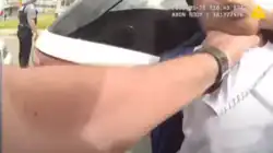A screenshot of police body camera video that shows the officer's hand on Colon's neck