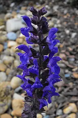 Salvia × superba is a widely grown Salvia hybrid. Its origins are unknown, though it first appeared in cultivation, and its parents are believed to include Salvia × sylvestris and Salvia amplexicaulis. Salvia nemorosa has also been suggested as a direct parent or close relative, but with so many similarities between these species and hybrids, there is no conclusive evidence. It is often mistakenly called Salvia superba.[1][2]
