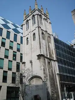 The church as shown in the mid-16th century Copperplate map of London. | 51°30′50″N 0°06′20″W / 51.513767°N 0.105518°W |