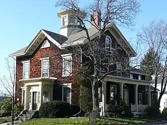 The Samuel Gaut House is a historic house in Somerville, Massachusetts. The 2+1⁄2-story wood-frame house was built c. 1855 for Samuel Gaut, a baker, and is a well-preserved example of a typical Italianate house. It is three bays wide with a typical Italianate center gable, which is studded with brackets and has a trefoil window in the peak. The side gables have round-arch windows, and the building is topped by an octagonal cupola with a belled finial.[2]