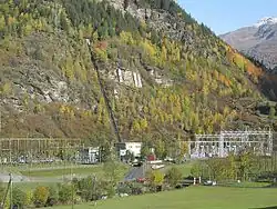 Robbia power station, with its supply pipe-line on the mountainside behind