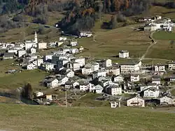 The village lies on the southern approach to the Bernina Pass, and at one time was responsible for the maintenance of the road over the pass. It has a parish church, known as San Carlo Borromeo and built in 1613, and a primary school. The current road to the pass, Hauptstrasse 29, passes through the village.[1][2]