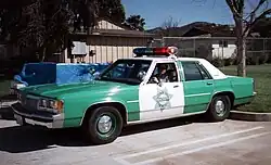 Green-and-white Ford LTD Crown Victoria, in 1991.