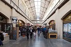 The ground floor of the building is occupied by a marketplace featuring about 50 restaurants, retail shops and food purveyors, most of which are open seven days a week.[14] An outdoor farmers' market operates on the surrounding plaza.[14] As of October 9, 2020, the San Francisco online, community radio station BFF.fm broadcasts live from the Ferry Building.[15]