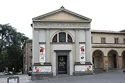 San Giacomo Maggiore is a Neoclassical architecture, Roman Catholic church located on Piazza del Duomo #10, with a facade facing north to the cathedral piazza, just to the west of Palazzo Soliano, and adjacent to the former hospital of Santa Maria della Stella, in Orvieto, region of Umbria, Italy.