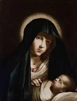 A church at the site was present since the 13th century, but the present structure was erected in 1792-1798 by Cosimo Morelli. The classic façade (1842) with giant order pilasters and a triangular tympanum was designed by Agostino Benedettelli. The church is dedicated to Saints George, Stefano, and Martin of Tours. The interior houses a 16th-century wooden crucifix and a venerated icon of a Madonna della Salute attributed to Giovanni Battista Salvi, known as Sassoferrato, donated to the church in 1666.[2]