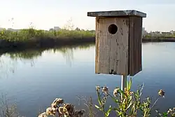 The landscaping has been designed to attract birds, and nesting boxes for the birds have been provided. While waterbirds such as herons, egrets, pelicans, sandpipers, ducks, geese, and kingfisher spredominate, monthly censuses have found over 120 species of birds, including terrestrial hawks, swallows, roadrunners, and hummingbirds.[2][3][4]