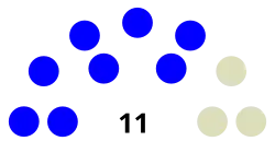 Seats11 (10 city councilmembers with the mayor presiding with voting rights)
