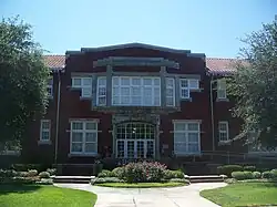San Marco Square is the neighborhood's major commercial district. The triangular district is located at the three-way juncture of Atlantic Boulevard, Hendricks Avenue and San Marco Boulevard; a tiered fountain at the center of the square originally marked the convergence of these streets.[21] The San Marco Building, a Mediterranean Revival structure completed in 1927, was the district's first commercial building and set its architectural tone.[26] Other features of the square include the San Marco Theatre, an art deco single-screen movie theater first opened in 1938;[27] and the Little Theatre, home to Theatre Jacksonville, one of the country's oldest community theater troupes.[28]