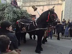 On the morning of the second day, before the patronal procession, mattre (tables for the poor) are prepared and blessed by the parish priest. The mattre were originally offered to the poorer communities of the town but today it is generally offered to everyone including tourists. The Tables of Saint Joseph, which reference the Last Supper, are also prepared. Thirteen loaves of bread are prepared and set out on tables.[28]