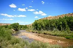 The San Miguel River is a tributary of the Dolores River, approximately 81 miles (130 km) long,[2] in southwestern Colorado in the United States. It rises in the San Juan Mountains southeast of Telluride and flows northwest, along the southern slope of the Uncompahgre Plateau, past the towns of Placerville and Nucla and joins the Dolores in western Montrose County approximately 15 miles (24 km) east of the state line with Utah.
