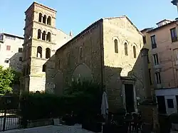 The church was founded in the 12th century, putatively with a facade defined in 1195 by Binellius.[1] Separate from the nave, in a small garden is the square campanile, with mullioned windows. The interior of the church had been embellished over the centuries, but a 19th-century reconstruction led to the more spare interior seen today.[2]