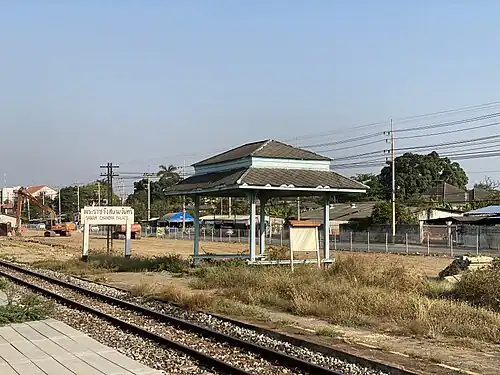 Sanam Chandra Palace Railway Halt is a railway halt located in Phra Pathom Chedi Subdistrict, Nakhon Pathom City, Nakhon Pathom. It is located 49.798 km (30.9 mi) from Thon Buri Railway Station. It is located near Sanam Chandra Palace, and used to have a royal pavilion, however this was moved to Hua Hin Railway Station.