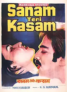 Sanam Teri Kasam (transl. Swear on you, my beloved) is a 1982 Indian Hindi-language romantic comedy film directed by Narendra Bedi[1] and produced by Barkha Roy, starring Kamal Haasan, Reena Roy, Kader Khan, Ranjeet, Jeevan.Movie's storyline is somewhat similar to Shammi Kapoor hit Tumsa nahin dekha. The film became a hit at the box office and was more successful in the big cities.[2][3][4]