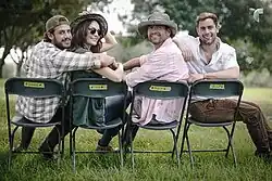 From left to right, The Montiel Family composed by Juan José (Lambda García), Natalia Martínez de Montiel (Carolina Gómez), Paco Montiel (Miguel de Miguel), and Luis Montiel (Gabriel Rossi]).