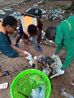 Sanitation can include personal sanitation and public hygiene. Personal sanitation work can include handling menstrual waste, cleaning household toilets, and managing household garbage. Public sanitation work can involve garbage collection, transfer and treatment (municipal solid waste management), cleaning drains, streets, schools, trains, public spaces, community toilets and public toilets, sewers, operating sewage treatment plants, etc.[15]: 4  Workers who provide these services for other people are called sanitation workers.