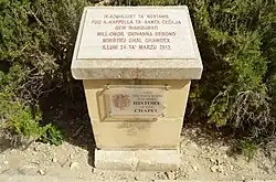 Plinth with a plaque commemorating the inauguration of the restored chapel in 2012