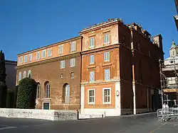 The site belonged to the Schola Francorum, a hospice for German pilgrims which was the oldest German institution in Rome.[2] The church, lying in piazza Protomartiri Romani, is in the area of the Palazzo del Sant'Uffizo, which belongs to Italy but according to the Lateran treaty has an extraterritorial status in favour of the Holy See.