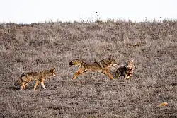 The Santa Teresa Hills are a critical habitat for the threatened Bay checkerspot butterfly, whose primary host plant is the dwarf plantain.[11][7] Other animals include deer, coyotes, bobcats, wild turkeys, California quail, red-shouldered hawks, turkey vultures, and rattlesnakes.
