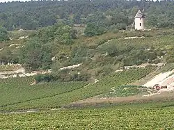 Santenay wine is produced in the communes of Santenay and Remigny in Côte de Beaune of Burgundy. The Appellation d'origine contrôlée (AOC) Santenay may be used for red and white wine with respectively Pinot noir and Chardonnay as the main grape variety. The production consists of almost 85% red wine, and a little over 15% of white wine. There are no Grand Cru vineyards within the Santenay AOC.