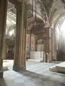 Santi Cosma e Damiano ai Banchi Nuovi is a deconsecrated church dedicated to Cosmas and Damian in Naples. It is sited on largo Banchi Nuovi and owes its name to the Banchi Nuovi, whose loggia previously occupied the church's site. The church was founded in 1616 and re-used the loggia's facade. It was extended later in the 17th century, including a scheme led by the engineer Luigi Giura. Its high altarpiece is now in the Diocesan Museum.
