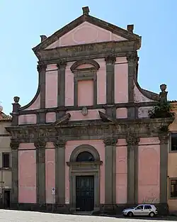 Santi Giuseppe e Teresa is a Baroque-style, deconsecrated Roman Catholic church in the historic Viterbo, regio of Lazio, Italy. The church is mainly vacant, with some municipal offices, and its fate undecided; amid the proposals are an open market or museum.[1]