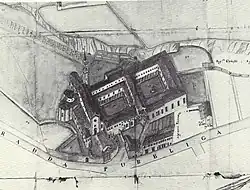 The church of Saints Nazarius and Celsus in a drawing from the early 1700s. Note the buildings that made up the monastery, of which little remains today