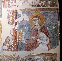 The present building dates from the 15th century but is only the latest in a series of religious buildings that followed one another over the centuries. The origin of the church of Saints Nazarius and Celsus is very ancient and can be traced back to the construction of an early, simple building at the foot of Mount Castiglione, in whose tuff the apse was excavated, and originally dedicated to St. Michael the Archangel. It was probably a martyrion dedicated to the veneration of the relics of Saints Nazarius and Celsus and dating from the early Christian era, between the 6th and 7th centuries, at the dawn of Christianity.[1] In addition to the apse, this building consisted of a dark cruciform masonry hallway with a transept and barrel-vaulted roof. The walls were decorated with cycles of frescoes in overlapping layers from various periods, some of which were detached in 1881 and moved to the former church of San Francesco al Corso at the Giovanni Battista Cavalcaselle Fresco Museum, while parts of the mosaic floors remain in place.[2][3] A rudimentary monastery must have stood next to this martyrion.[4]