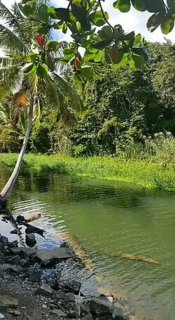 Río Santiago is a short river of Puerto Rico. About 5.95 miles (9.58 km) long, it is spanned by historic Bridge No. 122 on the coastal road near barrio Duque in Naguabo, Puerto Rico. It discharges into the Caribbean Sea from Naguabo.[2]