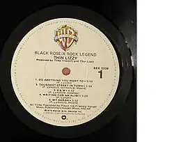 On early US pressings of Black Rose, the song was incorrectly titled "My Sarah" (pictured).