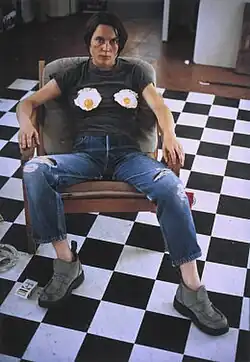 Sarah Lucas (born 1962) is an English artist. She is part of the generation of Young British Artists who emerged in 1988. Her works frequently employ visual puns and bawdy humour by incorporating photography, sculpture, collage and found objects.[1]