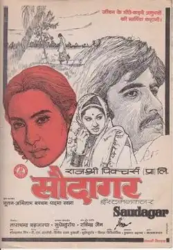 Saudagar (transl. Trader) is a 1973 Bollywood drama film, directed by Sudhendu Roy and based on the Bengali story, Ras, by Narendranath Mitra.[1][2] It stars Nutan as Mahzubeen and Amitabh Bachchan as Moti, in the leading roles. It also featured Trilok Kapoor, and Padma Khanna as Phoolbanu. Murad, Leela Mishra as (Badi Bhi), Dev Kishan, Jugnu and V. Gopal are also featured in the film. Though the film didn't do well commercially,[1] it was selected as the Indian entry for the Best Foreign Language Film at the 46th Academy Awards, but didn't receive a nomination.[3][4]