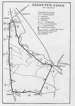 The Saxtorp TT-races were international motorcycle races, reminiscent of Isle of Man TT and held in Saxtorp, 10 km (6.2 mi) south of Landskrona in Scania, southernmost Sweden. The races were held in August every year during the 1930s. The official name was Sweden Grand Prix, but they were labeled "TT-lopp" in Sweden.[1][2] The first race was held on 31.August 1930 and the last race was decided on 6.August 1939.[3] The Second World War prevented further races. Axel Löfström was the "general" around the events.[4]
