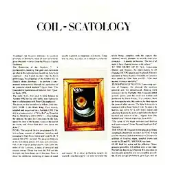 7. ^ Gill, John (January 30, 1985). "Coil 'Scatology' (K422/Rough Trade)" (scan). Time Out. Retrieved March 16, 2018 – via Brainwashed archive.