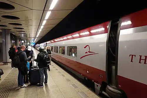 Thalys high-speed train stopping at Schiphol Airport, 2022