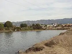 Originally, the creek flowed into the south end of a large, northward-flowing salt marsh and slough that also carried waters of Codornices and Marin Creeks to San Francisco Bay. West of this marsh, low dunes and a crescent of sandy beach curved northwest to Fleming Point. But the marsh was filled, the creek was channeled into a pipe that also carried sewage to the Bay, and the shoreline was extended westward with Berkeley's garbage.