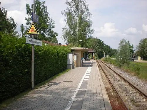 Schwabhausen (bei Dachau) station is a railway station in the municipality of Schwabhausen, located in the district of Dachau in Upper Bavaria, Germany.