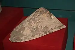Although Chinese civilization lacked the bloomery, the Han Chinese were able to make wrought iron when they injected too much oxygen into the cupola furnace, causing decarburization.[22] The Han-era Chinese were also able to convert cast iron and pig iron into wrought iron and steel by using the finery forge and puddling process, the earliest specimens of such dating to the 2nd century BCE.[23] The semisubterranean walls of these furnaces were lined with refractory bricks and had bottoms made of refractory clay.[24] Besides charcoal made of wood, Wang Zhongshu states that another furnace fuel used during the Han were "coal cakes", a mixture of coal powder, clay, and quartz.[25]