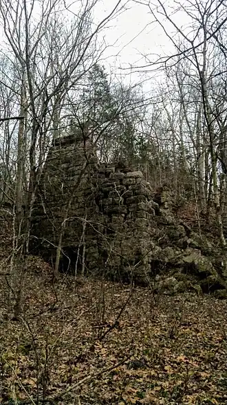 Scotia Iron Furnace Stack is a historic iron furnace stack located near Leasburg, Crawford County, Missouri. It was built about 1870 by the Scotia Iron Works, and is 35 feet wide at the base, and approximately 40 feet high. It is constructed of native limestone blocks. The furnace remained in operation until 1880.[2]: 2–4