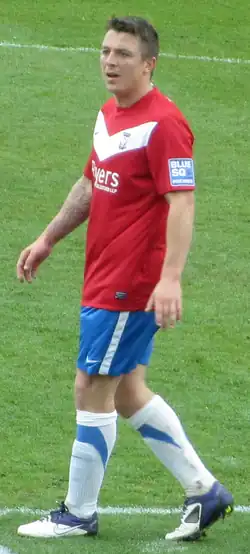 In November 2008, Brown went to Port Vale on loan after failing to make an appearance under manager Martin Allen.[20][21] He scored on his debut on 22 November, in a 4–2 defeat to Wycombe Wanderers at Vale Park.[22] In January 2009, Vale signed Brown on a free transfer after his Cheltenham contract expired.[23] With 19 appearances for Vale in 2008–09, he was released upon the season's conclusion.[24] He rejoined Cheltenham on 25 March 2010 on non-contract terms,[25] but was released by the club along with seven other players in May,[26] having only played 16 minutes in the final match of the season.[27]