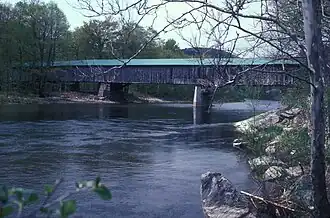 Scott Covered Bridge is a covered bridge spanning the West River in Townshend, Vermont. Built in 1870, it is at 277 feet (84 m) one of the longest covered bridges in the state (the West Dummerston Covered Bridge is longer by three feet), exhibiting three different forms of support: a Town lattice truss, kingpost trusses, and laminated arches. The bridge was listed on the National Register of Historic Places in 1973.[1] It is closed to all traffic.