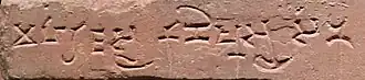 - ^ Close-up image of the inscription of the Kimbell Buddha in Fussman, Gérard (1988). "Documents épigraphiques kouchans (V). Buddha et Bodhisattva dans l'art de Mathura : deux Bodhisattvas inscrits de l'an 4 et l'an 8". Bulletin de l'École Française d'Extrême-Orient. 77: 27, planche 2. doi:10.3406/befeo.1988.1739.