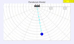 For a simple gravity pendulum — a point mass on a weightless string of length swinging with an infinitesimally small amplitude, without resistance — the period of the pendulum will be:[2]: 2.6